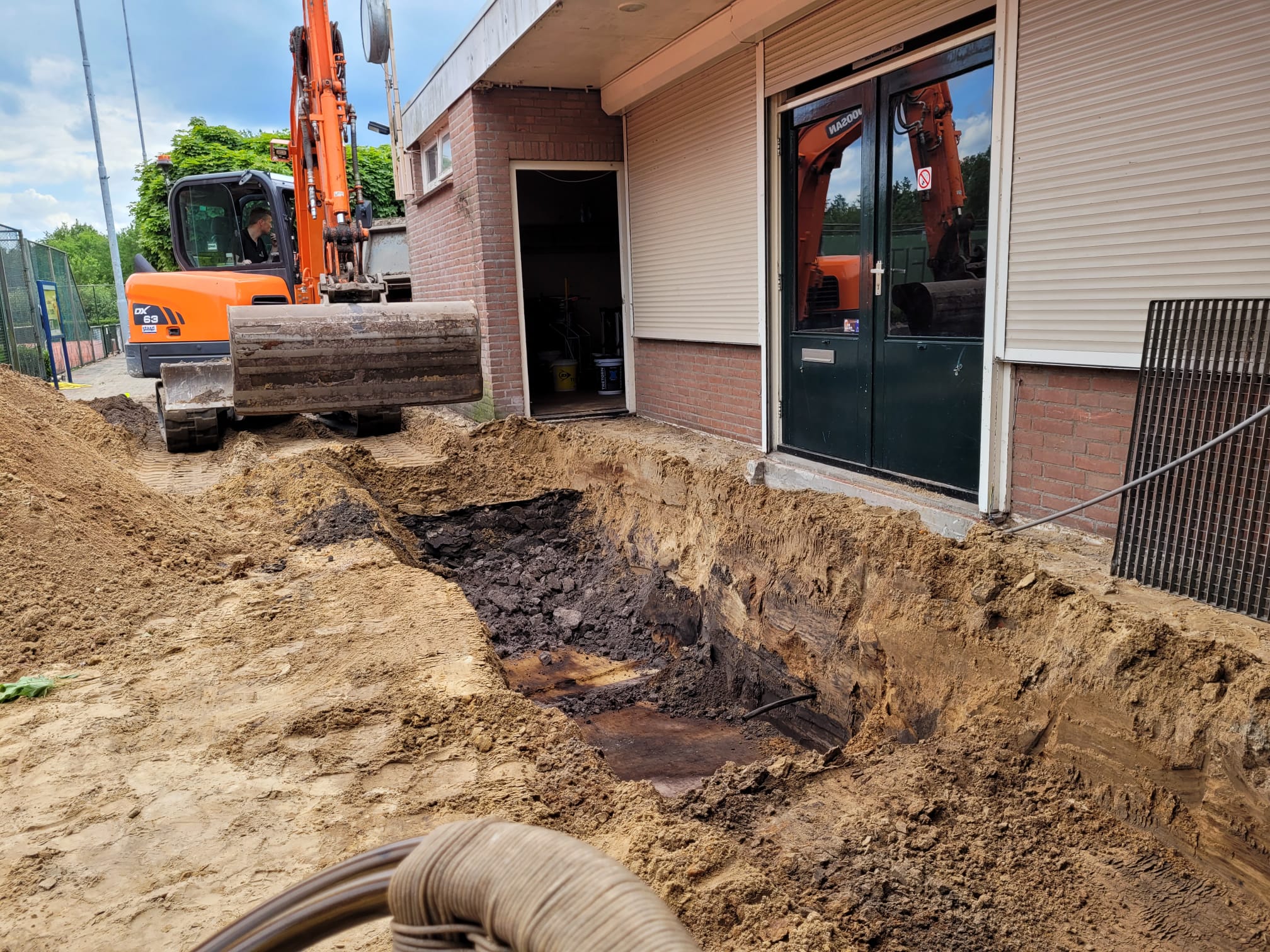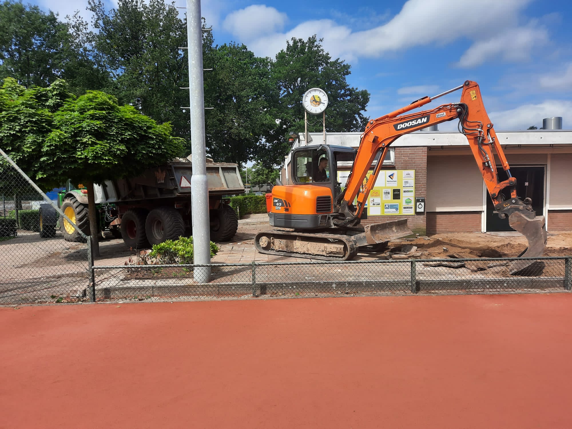 De renovatie is, met het vele graafwerk rond de kantine, echt begonnen. Komende week stort Bouwservice der Kinderen de nieuwe funderingen.