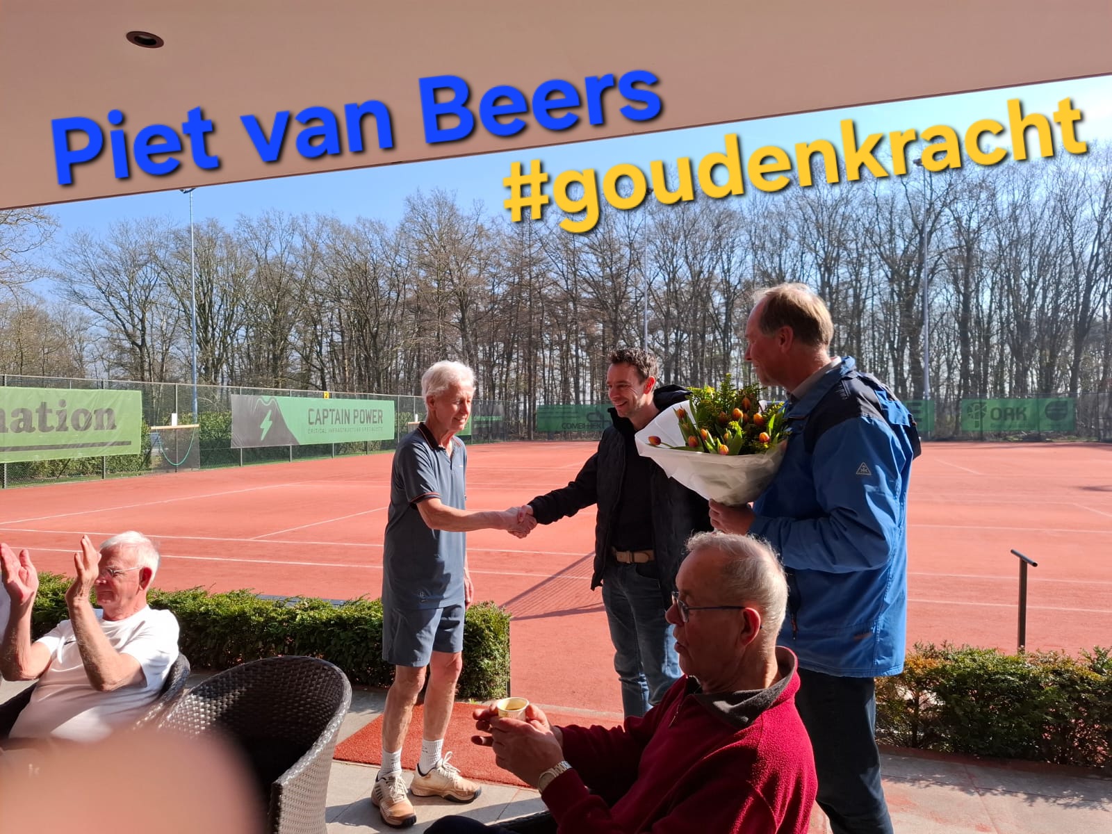 Na afloop van het seniorentennis op donderdagochtend 19 maart is PIET VAN BEERS in het zonnetje gezet!